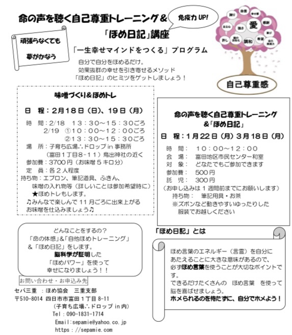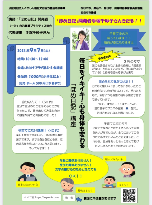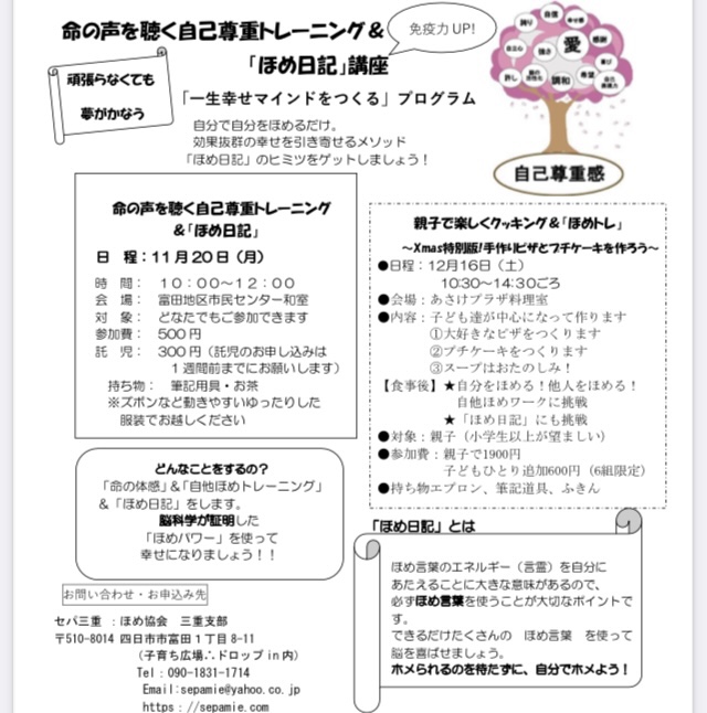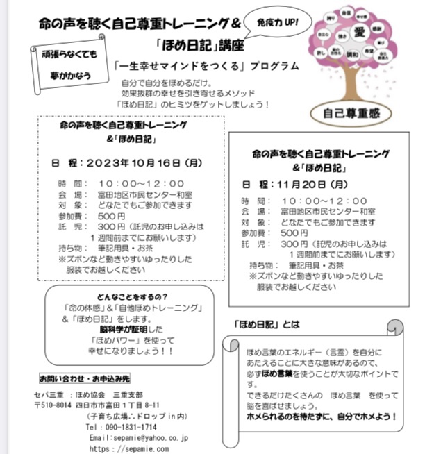 たくさんの方に来ていただけるようほめ協会三重支部(セパ三重)も努力したいと思っています。